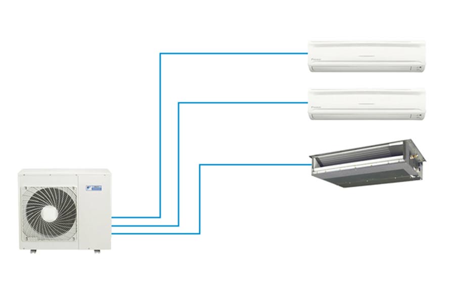 – Đặc điểm: Tương tự điều hòa trung tâm nhưng quy mô nhỏ hơn, 1 dàn nóng sẽ kết nối với 2 đến 5 dàn lạnh.