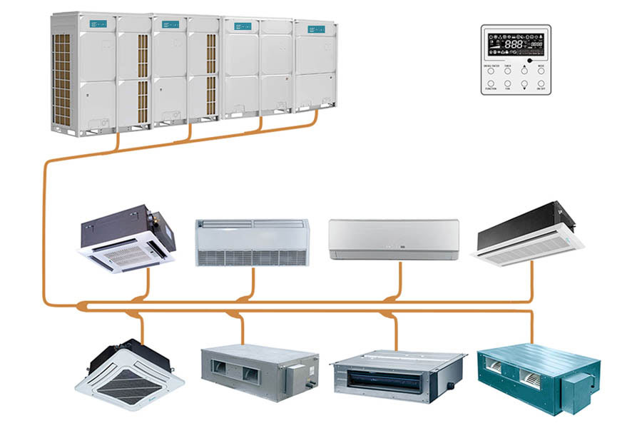 – Đặc điểm: Là hệ thống trong đó 1 dàn nóng nối với nhiều dàn lạnh (từ 6 đến tối đa 64 dàn lạnh).
