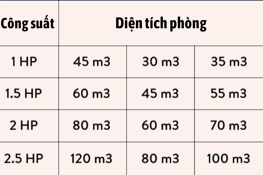 Khi chọn điều hòa cho phòng ngủ, công suất phù hợp với diện tích phòng là một yếu tố quan trọng để đảm bảo máy hoạt động hiệu quả và mang lại không gian mát mẻ.