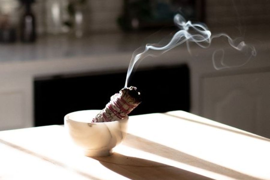 Bước 2: Mang bát hoặc đĩa thuốc bắc đã nướng đi khắp nhà, theo chiều kim đồng hồ, để khói thuốc bắc lan tỏa khắp mọi ngóc ngách.