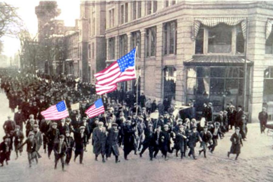 Khoảng 50 năm sau, ngày 8/3/1908, 15.000 phụ nữ diễu hành trên các đường phố New York đòi tăng lương, giảm giờ làm, không được dùng lao động trẻ em. Nhận thức được điều đó, Đảng Xã hội Hoa Kỳ tuyên bố lấy ngày 28/2/1909 là ngày Quốc tế phụ nữ.
