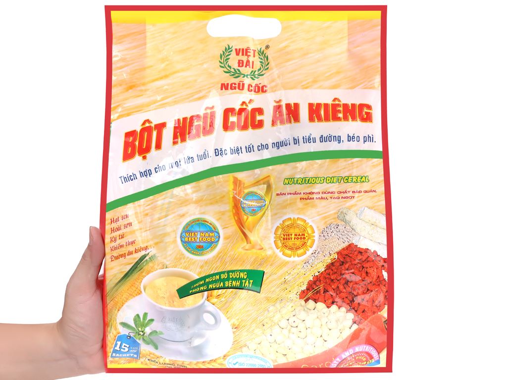 - Thành phần chính của ngũ cốc Ăn kiêng Việt Đài gồm có gạo lứt, đậu nành, dầu cọ, bắp, đậu xanh, bột yến mạch,….