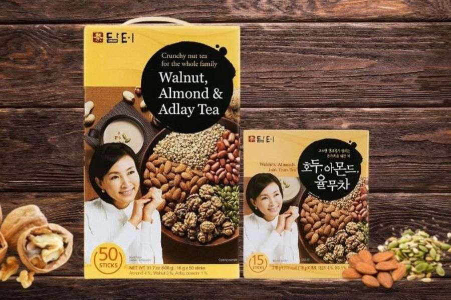 - Thành phần: Bột ngũ cốc giảm cân Damtuh có xuất xứ từ Hàn Quốc được sản xuất bằng cách sấy khô hạt hạnh nhân, óc chó, đậu nành, hạt bí, gạo xát, bột đậu phộng, mạch nha,…