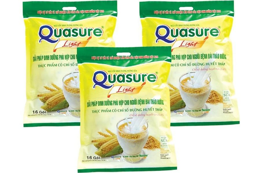 - Công dụng: Đây là sản phẩm có hàm lượng đường thấp, phù hợp dành cho người cao tuổi, người mắc bệnh đái tháo đường type 2. Sử dụng sản phẩm thường xuyên cung cấp đủ chất dinh dưỡng, tốt cho đường ruột và giúp kiểm soát tốt lượng đường trong máu. Ngoài ra, lượng vitamin và chất xơ dồi dào có trong Quasure light Bibica giúp bạn no lâu, giảm cảm giác thèm ăn, hỗ trợ đốt cháy mỡ thừa.