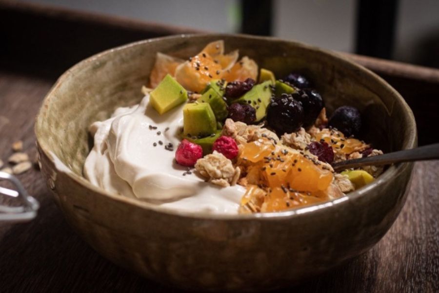 Sữa chua kết hợp cùng với ngũ cốc, các loại trái cây như chuối, thanh long, việt quất,… là món ăn quen thuộc và dễ làm.