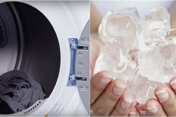 - Tiếp đó, bạn lấy 3 – 4 viên đá trong tủ lạnh rồi cho vào máy máy giặt.