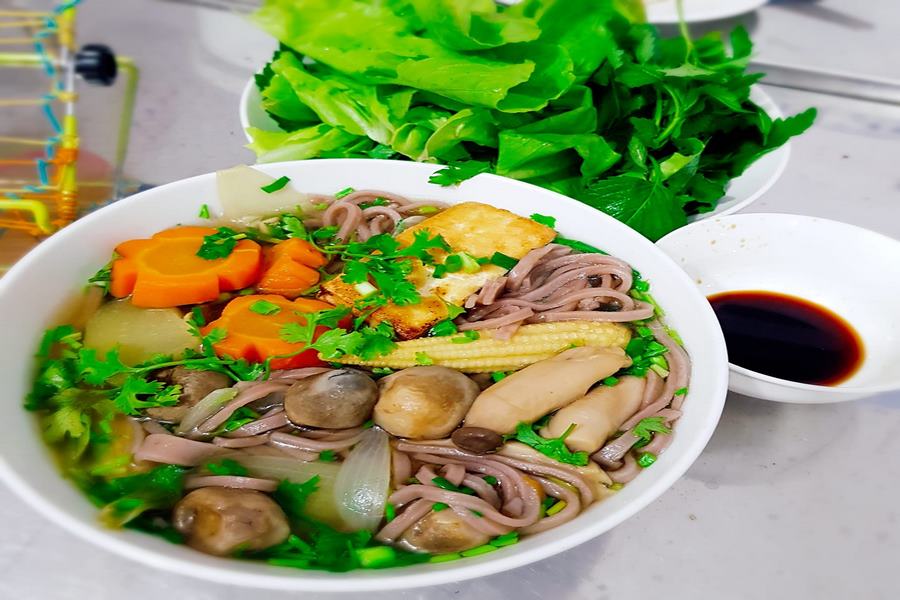 Khi ăn món bún này, bạn nên ăn kèm với rau sống để cân bằng vị giác chua chua, thanh thanh.