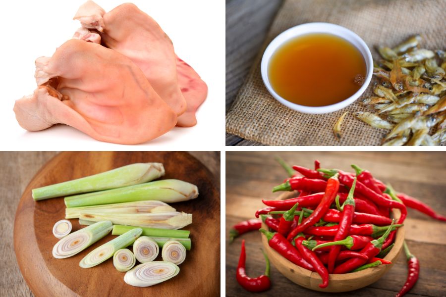 - Tai heo mua về rửa sạch, cạo lại cho sạch lông, xát chanh muối để khử mùi hôi. Tiếp đến, ngâm tai khoảng 5 – 7 phút với 200ml giấm rồi vớt ra, rửa sạch lại rồi để ráo.