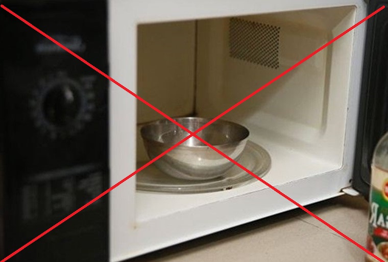 Đây là thứ mà bạn không bao giờ được bỏ vào lò vi sống đế tránh gây cháy nổ cho lò. Vì sóng của lò vi sóng sẽ không xuyên qua được kim loại mà bị phản xạ ngược vào thành lò. Dẫn đến việc làm nóng xung quanh lò và có khả năng hư hỏng và gây cháy nổ.