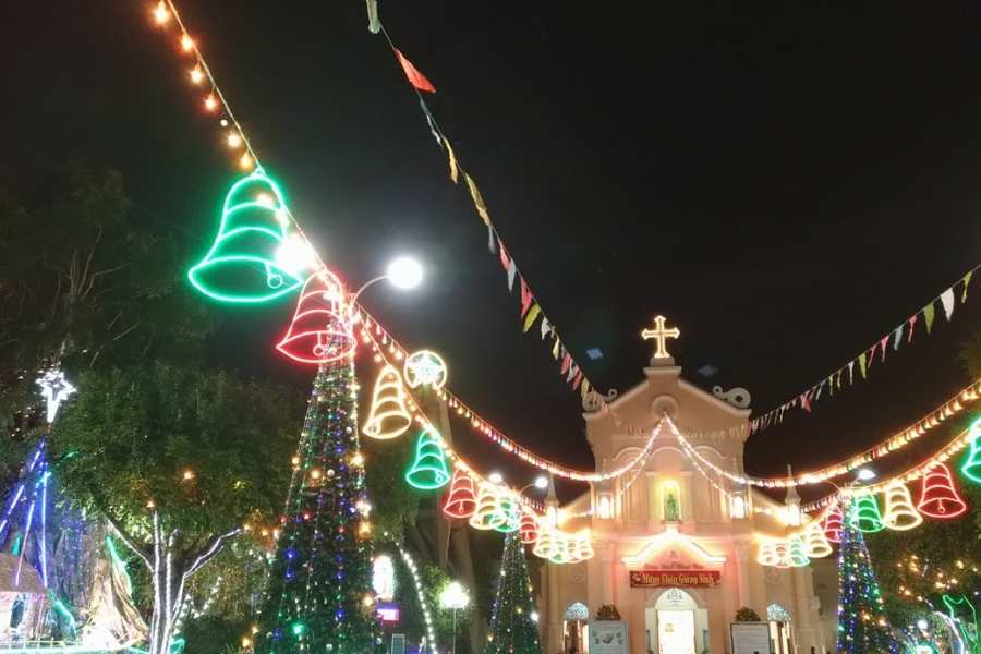 Vào Giáng Sinh, các nhà thờ thường trang trí cây thông Noel khổng lồ để mọi người lưu giữ những khoảnh khắc đẹp nhất và tạo không khí vui tươi từ các tiết mục văn nghệ.