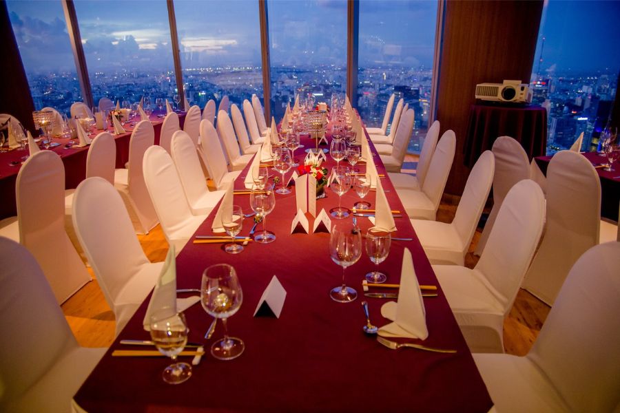 Nhà hàng Sorae – Lounge tại TP. Hồ Chí Minh nổi tiếng với view đẹp độc đáo và có tầm nhìn toàn cảnh trung tâm thành phố qua các ô kính lung linh bao quanh. Với thiết kế sang trọng kết hợp giữa phong cách Âu và Á, nhà hàng này tạo ấn tượng mạnh mẽ ngay từ lần bước chân đầu tiên.
