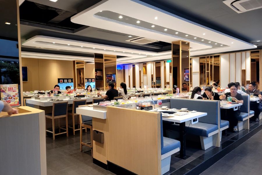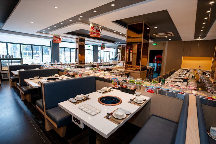 Kichi Kichi là nhà hàng luôn sẵn sàng phục vụ bạn trong dịp Noel này. Không gian nhà hàng lẩu băng chuyền với thiết kế nhẹ nhàng nhưng cũng không kém phần sang trọng. Bàn xoay tự động sẽ mang thức ăn đến tận nơi phục vụ mà thực khách không cần phải di chuyển quá nhiều trong suốt quá trình dùng bữa tại nhà hàng.