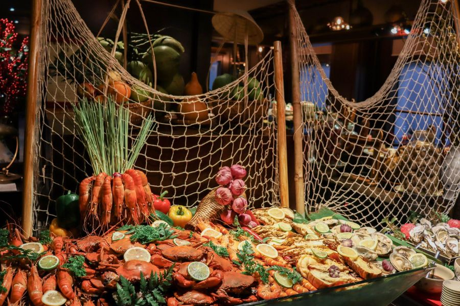 Nhà hàng này còn có buffet Hải Sản và đồ ăn theo phong cách Châu Âu như Chả giò tôm và thịt heo, Mì trứng với sủi cảo thịt heo, xá xíu, cải thìa và hành lá, vv..