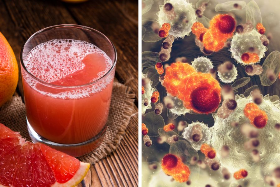 Đặc biệt, trong loại nước ép này cũng có chứa Lycopene cũng như Flavonoids. Đây là những chất có tác dụng bảo vệ tế bào khỏi tác động của các gốc tự do gây hại, ngăn chặn các bệnh liên quan đến tổn thương tế bào. Từ đó góp phần ngăn ngừa ung thư, nâng cao sức khỏe.