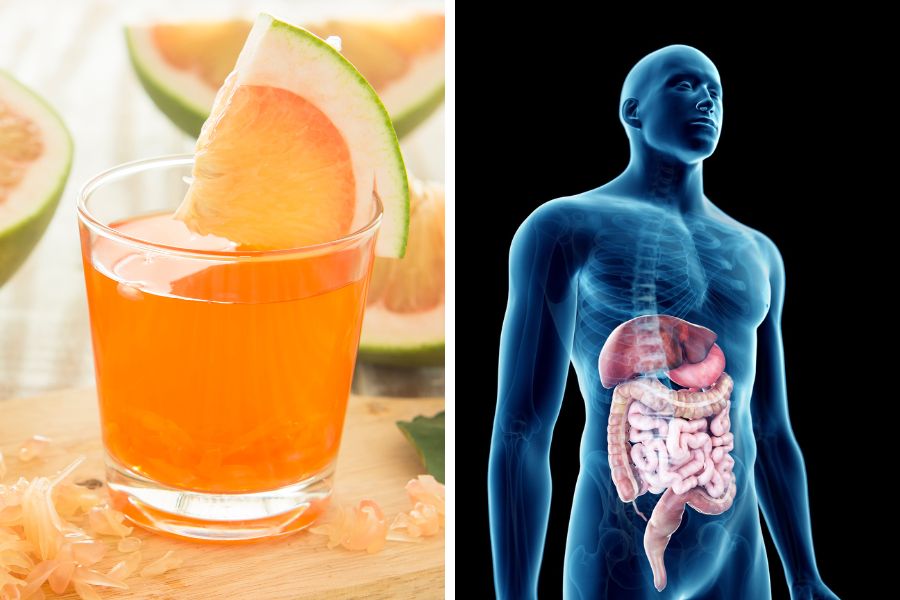 Bên cạnh đó, nước ép bưởi cũng có những chất oxy hóa giúp giảm tình trạng viêm nhiễm trong gan và túi mật. Loại nước ép này cũng giúp kích thích sự tiết mật, làm sạch gan, cải thiện chức năng tiêu hóa và đào thải độc tố.