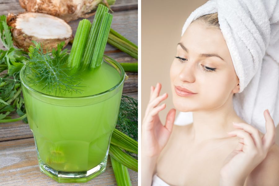 Ngoài ra, cần tây là một loại thực phẩm giàu vitamin A – một chất quan trọng trong quá trình thúc đẩy tái tạo tế bào da. Vì vậy sử dụng loại nước ép này sẽ giúp làn da trở nên tươi sáng, mềm mịn hơn.