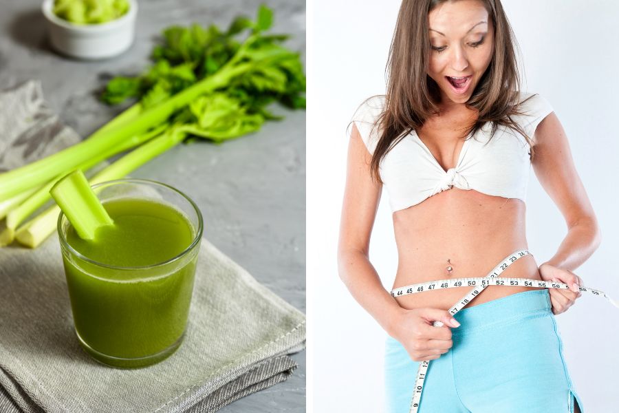 Bên trong cần tây có chứa một hàm lượng chất xơ lớn, giúp tạo cảm giác no lâu hơn. Đặc biệt, hàm lượng calo trong loại nước ép này cũng rất thấp (475ml chỉ có 85 calo). Từ đó sẽ kiểm soát được lượng thức ăn mà cơ thể hấp thụ, tính toán được lượng calo nạp vào có hiệu quả hơn.