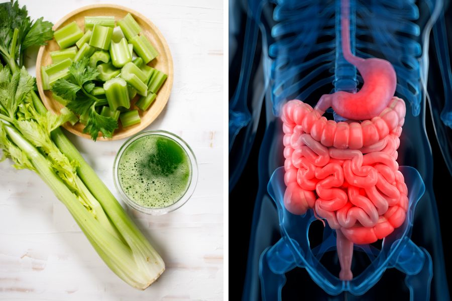 Hàm lượng chất xơ lớn có trong cần tây giúp tăng cường khả năng hấp thụ nước, khả năng chuyển hóa thức ăn trong đường ruột. Từ đó hỗ trợ hệ tiêu hóa, ngăn ngừa các tình trạng như táo bón, khó tiêu.