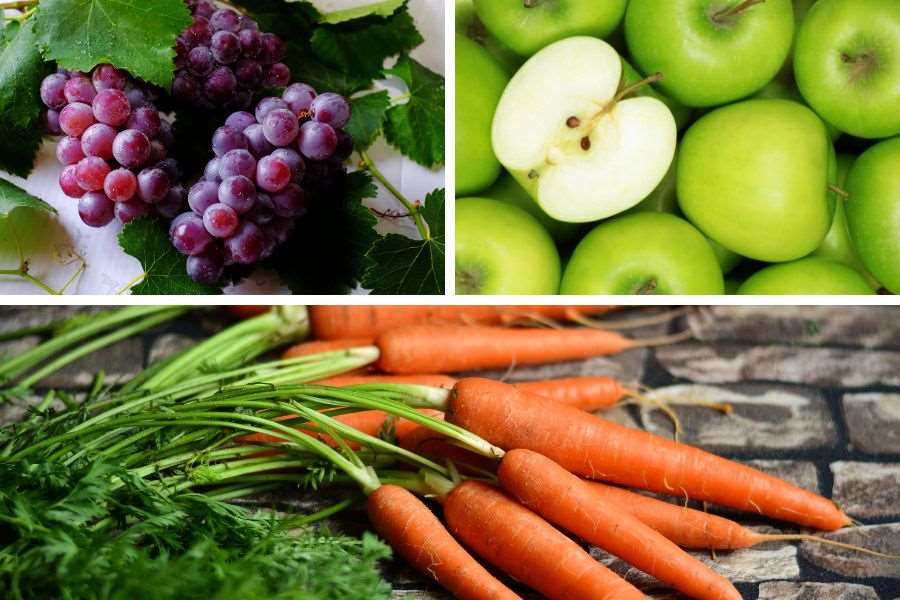 Nước ép nho, táo và cà rốt