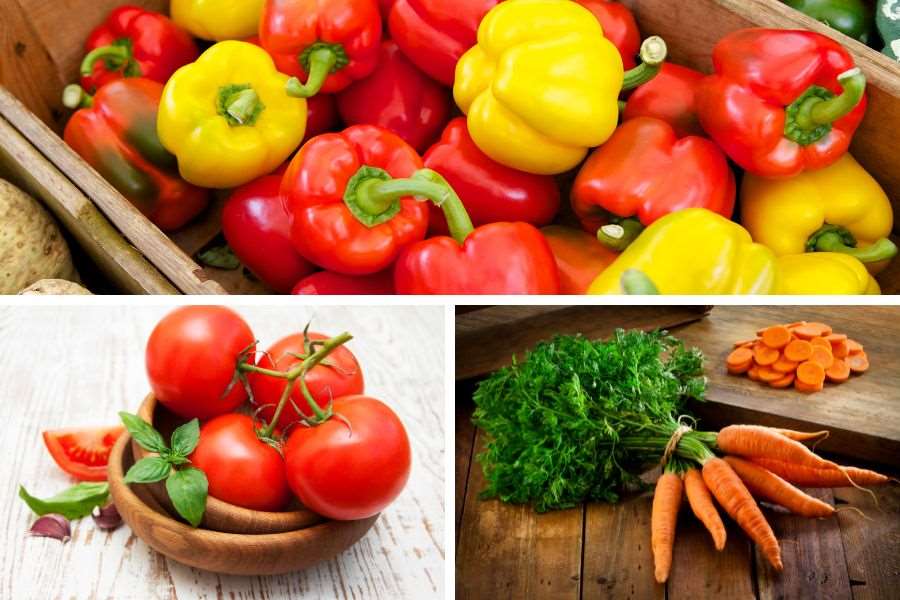 Đây là 3 loại rau củ có hàm lượng calo thấp, được sử dụng rất nhiều trong thực đơn ăn kiêng: 100g cà chua chứa 18 calo, 100g cà rốt chứa 45 calo, 100g ớt chuông chứa 31 calo.