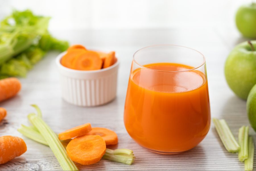 Nhiều người thường e ngại với hương vị khó uống của cần tây. Tuy nhiên, bạn hãy thử ngay công thức nước ép giảm mỡ bụng kết hợp cần tây, táo và cà rốt này nhé. Hương vị của táo xanh, cà rốt sẽ “lấn át” đi cần tây, mang đến ly nước ép đầy hấp dẫn.