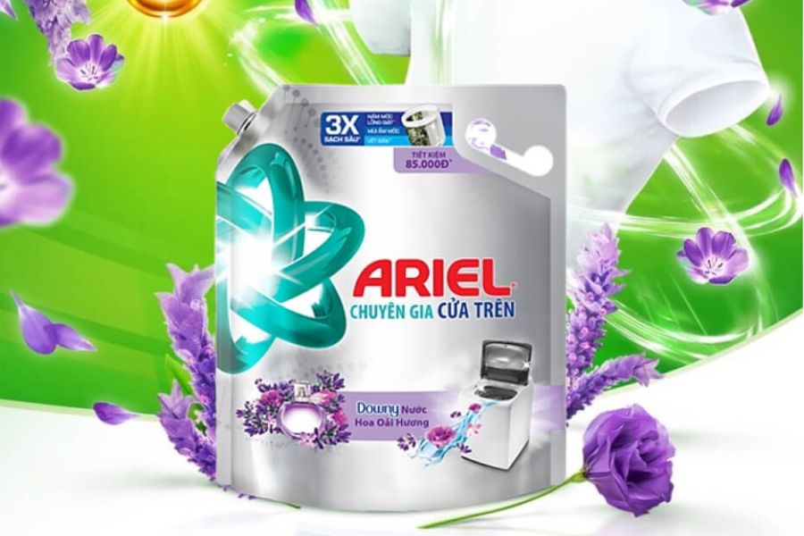 Nước giặt Ariel được nhiều chị em tin tưởng lựa chọn bởi công thức làm sạch Ariel 3D đánh bay vết bẩn, vi khuẩn vượt trội mà không cần sử dụng quá nhiều chất tẩy.