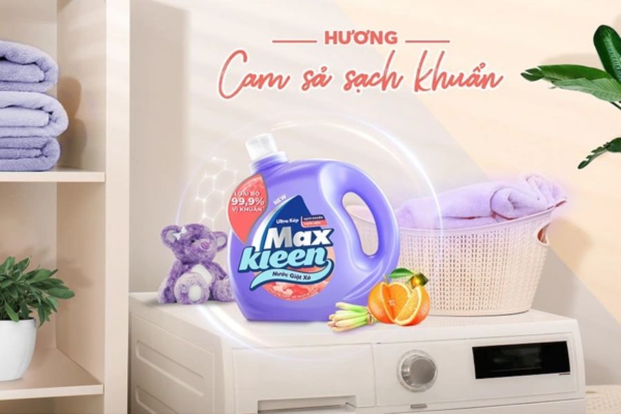 Đến từ đất nước Singapore đó là nước giặt xả 2 trong 1 Maxkleen. Với thiết kế vỏ ngoài màu tím ấn tượng, khả năng diệt khuẩn đến 99.9%, chiết xuất từ các thành phần tự nhiên với khả năng hòa tan nhanh, dễ dàng len lỏi bám sâu vào từng sợi vải hỗ trợ đánh bay mọi vết bẩn cứng đầu.