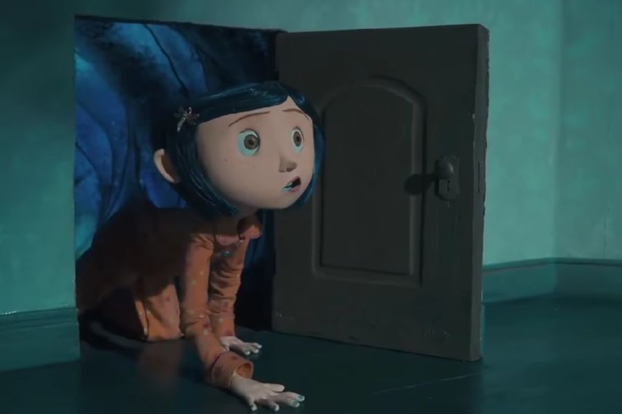 Và vào một ngày mưa tầm tã, Coraline chẳng còn việc gì làm nên cô bé bắt đầu đếm các thứ có màu xanh trong nhà, đếm số lượng các cửa sổ, đếm các cánh cửa. Và cô thấy có một cánh cửa như bị khảm vào tường – mẹ cô giải thích rằng đó vốn là cánh cửa thông sang phòng khác, khi khu căn hộ vẫn còn là một ngôi nhà lớn, chưa chia thành nhiều hộ nhỏ.