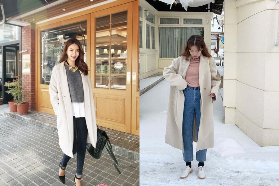 Áo khoác dạ với quần jeans