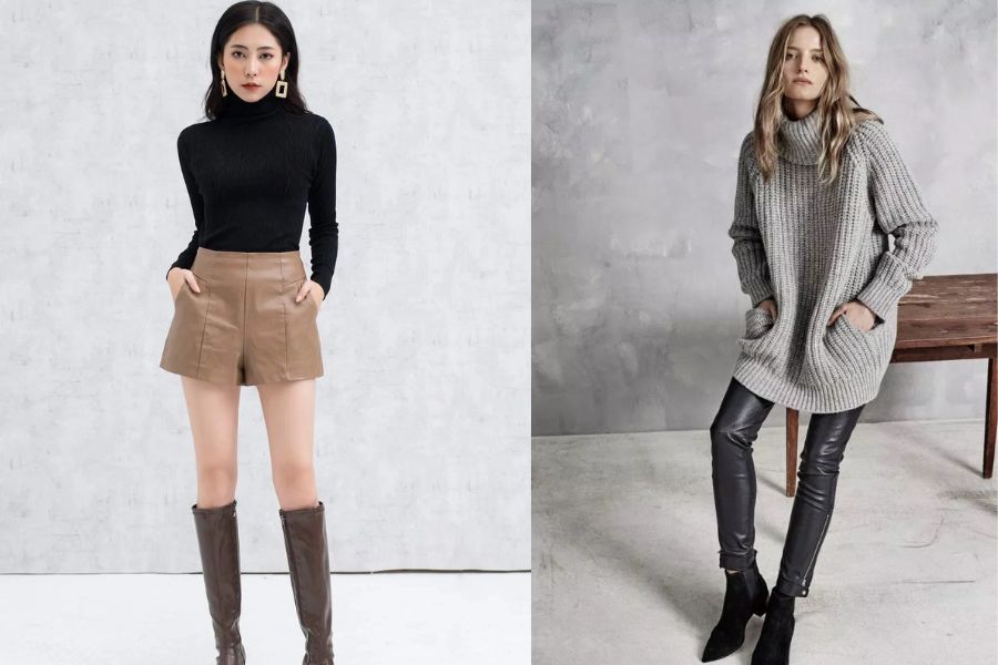 Áo len và quần da