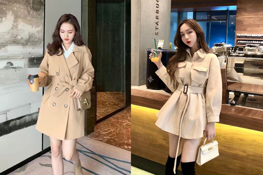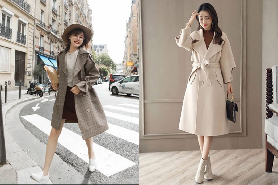 Những chiếc áo măng tô vừa có thể giữ ấm cơ thể, lại vừa có thể giúp bạn tôn dáng khi được mix với chiếc váy ngắn cùng đôi giày hoặc bốt cổ cao. Bạn nên cân nhắc phối màu giữa áo và váy sao cho thật nổi bật. Chẳng hạn như: Đỏ – trắng, nâu/đen – trắng,…