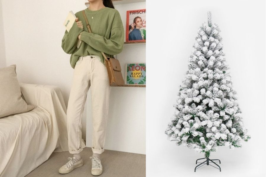 Bên cạnh sắc đỏ gắn với Ông già Noel thì còn màu xanh lá của cây thông và màu trắng tinh khôi gắn liền với tuyết. Nếu bạn muốn sở hữu 1 outfit thời trang đêm Giáng Sinh dịu mắt hơn mà vẫn nổi bật thì đây là 2 gam màu không thể bỏ qua.