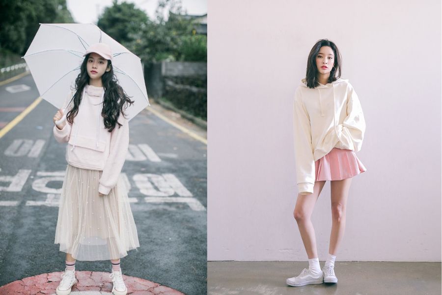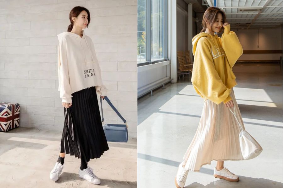 Kết hợp áo hoodie với chân váy
