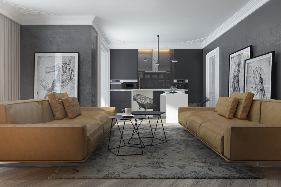 Phòng khách là nơi mà khách đến chơi sẽ đặt chân vào đầu tiên. Với không gian này thì tất cả các món đồ nội thất trong nhà phải thiết kế tối giản nhất với cấu trúc hình học, ít chi tiết, bề mặt trơn nhẵn, đơn sắc,… Bên cạnh đó, bạn cần phải đảm bảo được tính thiết yếu phù hợp với mục đích sử dụng của gia chủ.