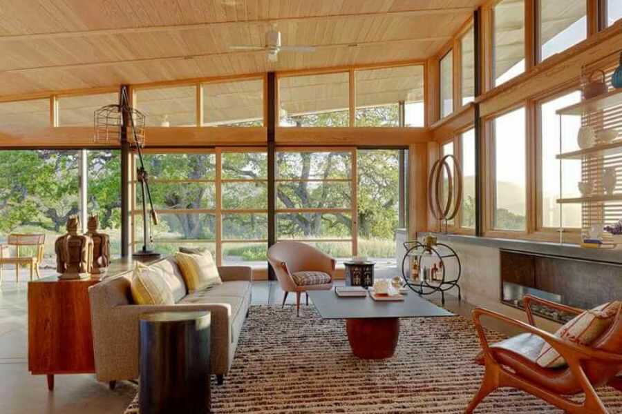Do đó, phần lớn những ngôi nhà sử dụng phong cách thiết kế này đều sẽ sử dụng các cửa sổ có kích thước lớn, đặt sát với sàn và trần nhà.