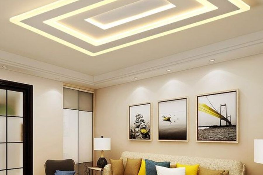 - Đèn trần, đèn chùm: Loại đèn này sẽ khiến không gian phòng khách trở nên lung linh, ấm áp và ấn tượng.