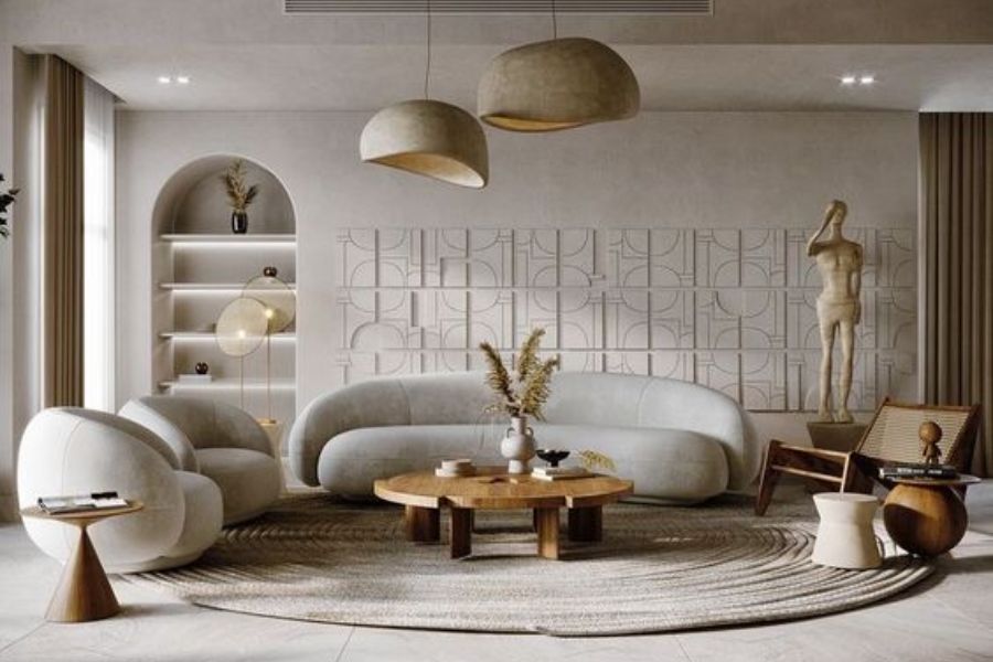 Những gam màu trung tính, tươi sáng rất phù hợp cho phòng khách vừa mang lại vẻ trầm tĩnh, vừa sang trọng, lịch lãm.