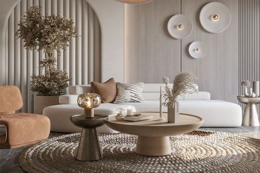 - Thảm: Thảm lông, thảm nhung đồng bộ với phong cách phòng khách tổng thể giúp tăng thêm cảm giác sang trọng đồng thời giúp giữ ấm và mang lại cảm giác thoải mái cho gia chủ.