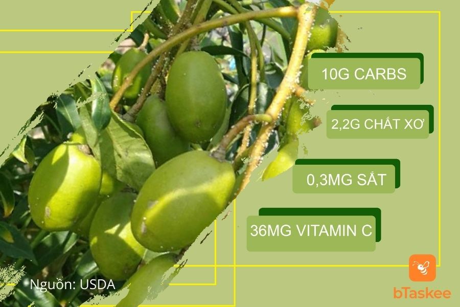 Quả cóc rất giàu chất dinh dưỡng. Trong 100g cóc tươi chứa đến 36mg vitamin C, 0.3mg sắt, 10g carbs, 2.2g chất xơ và rất nhiều chất khoáng có lợi cho sức khỏe. Giúp tăng cường sức lực và hồi phục cho cơ thể.