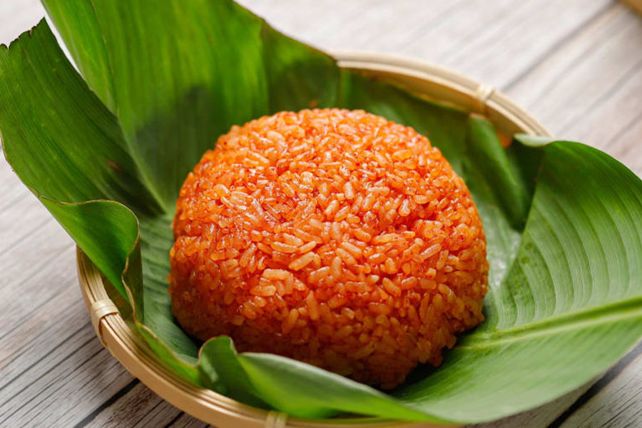 Món xôi gấc đã quá quen thuộc, xôi có màu cam rất đẹp. Màu cam rực rỡ, may mắn, thường xuất hiện trong các đám tiệc trọng đại của người Việt.