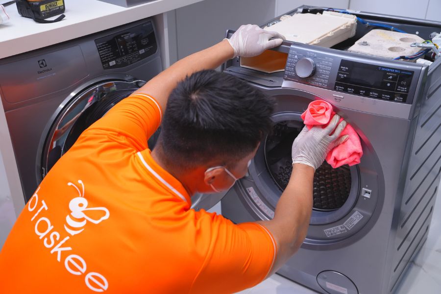 Dịch vụ vệ sinh máy giặt chuyên nghiệp của bTaskee sẽ giúp loại bỏ cặn bẩn, nấm mốc và vi khuẩn tích tụ bên trong máy, đảm bảo quần áo luôn sạch sẽ, thơm tho mỗi khi sử dụng.
