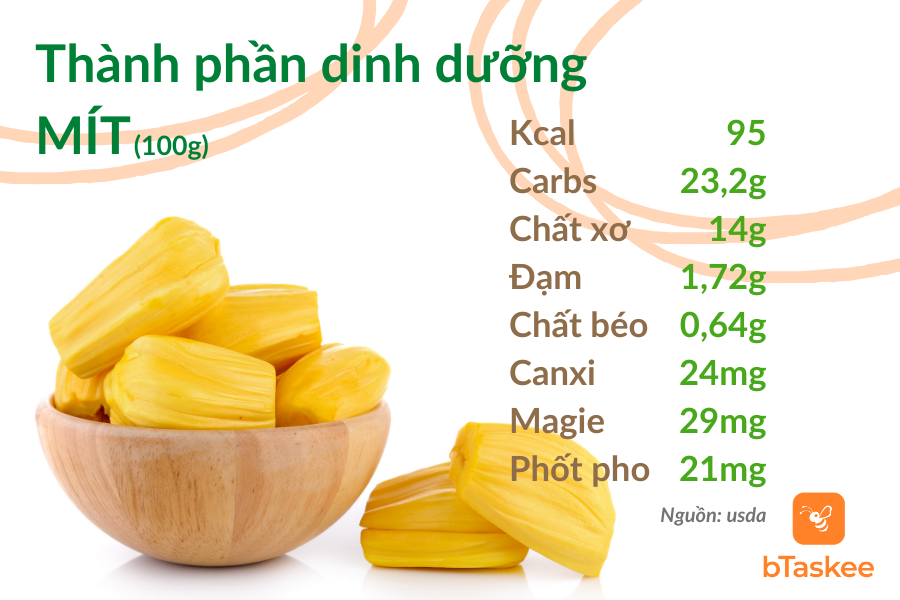Thành phần dinh dưỡng có trong 100 gram mít tươi gồm:
