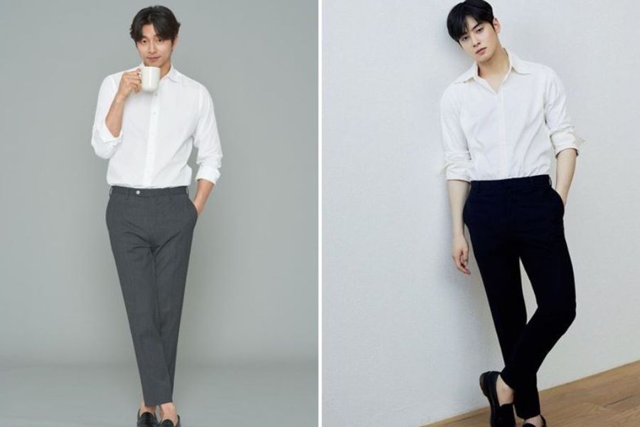 Nếu bạn cảm thấy lựa chọn màu sắc cho món quà Noel tặng đồng nghiệp nam quá khó thì đừng lo vì đã có gợi ý áo sơ mi – quần âu. Áo sơ mi trắng – quần âu đen đảm bảo cánh mày râu, ai mặc vào cũng sẽ vô cùng hợp.