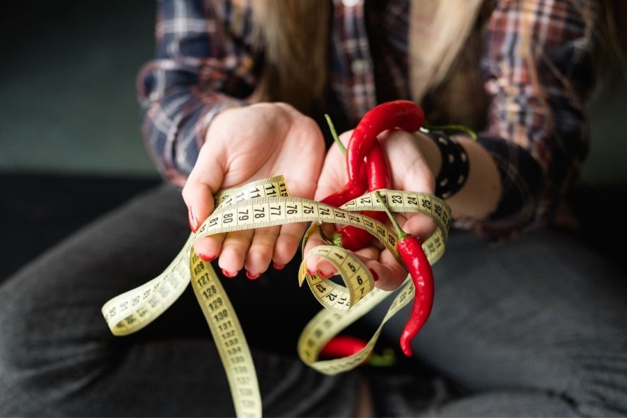 Ớt cay có chứa capsaicin, làm tăng nhiệt cơ thể và khởi động quá trình trao đổi chất của bạn. Người ta cho rằng capsaicin kích thích chất béo nâu, chất béo hoạt động chuyển hóa trong cơ thể làm tăng tốc độ đốt cháy calo của bạn.