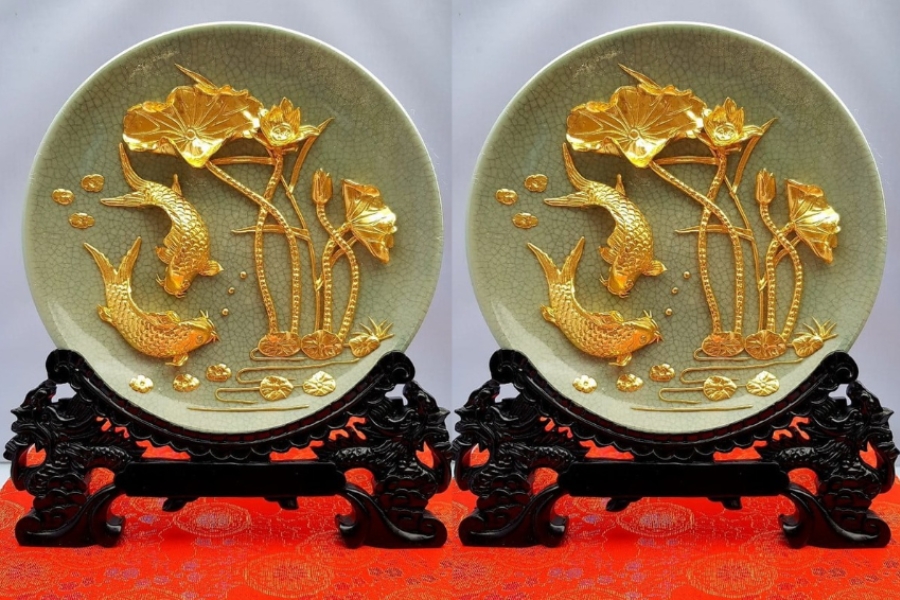 Theo quan niệm phương Đông, đĩa cá chép hoa sen là một món quà tân gia mang ý nghĩa của công danh và tài lộc. Hình ảnh cá chép vượt vũ môn để hóa rồng cùng với đóa hoa sen thanh cao tượng trưng cho sự may mắn và sự thăng hoa trong cuộc sống. Đây là món quà ý nghĩa để chúc mừng gia chủ luôn gặp nhiều thuận lợi và thành công.