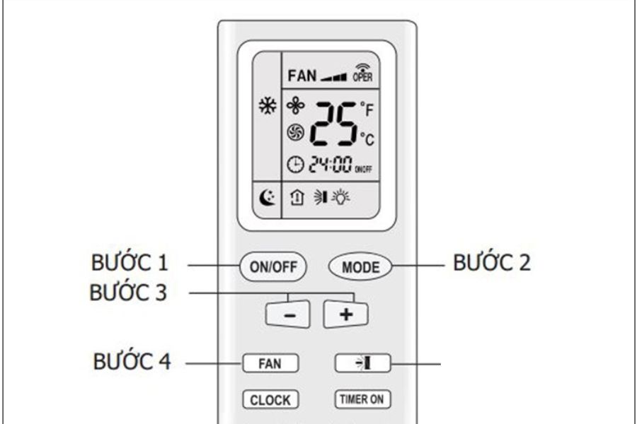 - Bước 1: Bạn khởi động máy lạnh bằng cách nhấn On/Off