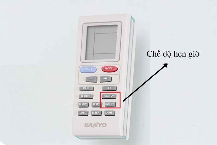 Trên remote máy lạnh Sanyo, để điều chỉnh bộ hẹn giờ, bạn cần nhấn các phím “Timer On” và “Timer Off”.