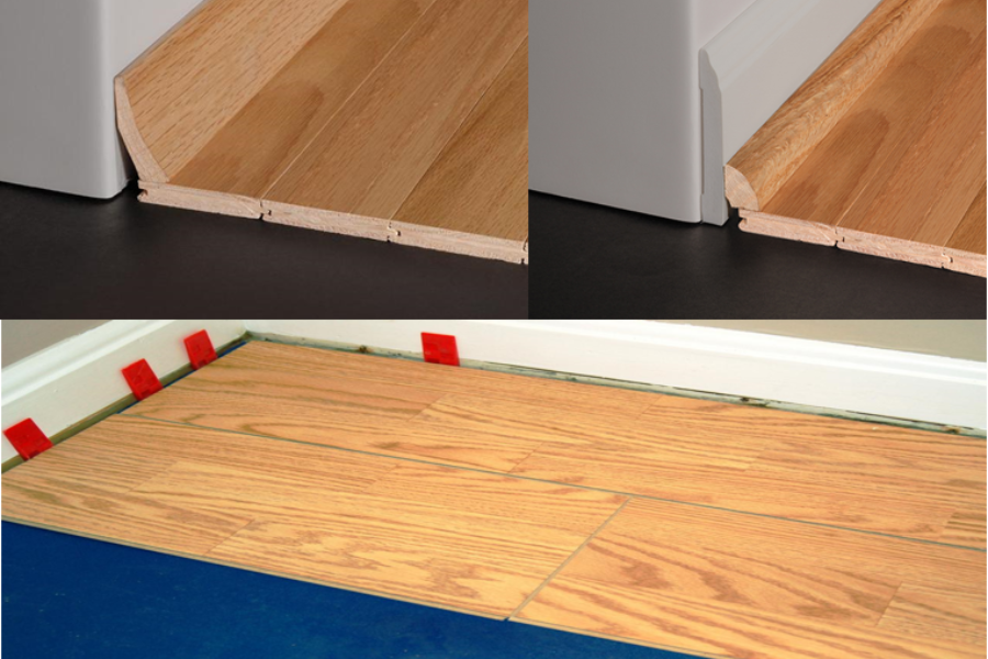 Tình huống này có thể xử lý rất đơn giản và dễ dàng. Lúc này, bạn chỉ cần tăng thêm khoảng cách giữa chân tường và miếng sàn gỗ là xong.