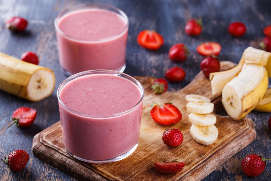 Một ly sinh tố kết hợp vị ngọt bùi của chuối, chua nhẹ của dâu tây cùng béo ngậy của sữa sẽ kích thích vị giác của bạn. Hãy bắt đầu buổi sáng với ly sinh tố này để có một ngày mới đầy hứng khởi nhé.