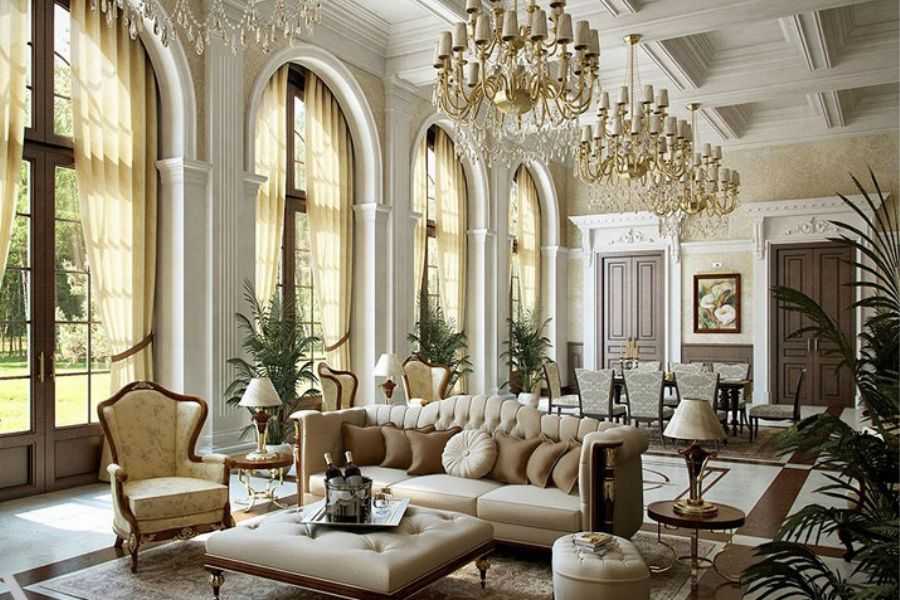 Sofa tân cổ điển hợp với phong cách Baroque, Empire, Louis XV và XVI vì những kiểu thiết kế này đều mang thiên hướng vừa cổ điển vừa hiện đại.